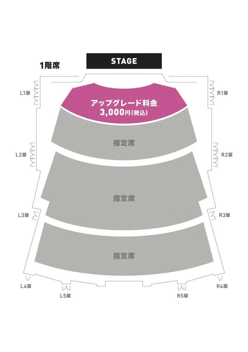 ※お申込みが定数に満たなかった場合、アップグレードチケットエリアと指定席エリアが混同する場合がございます。